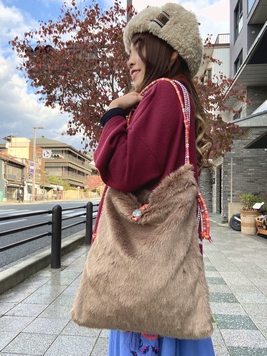 贅沢な手触りのフェイクファートートバッグ。