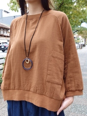 No: D8797BRN コットンツイルガーゼWフェイスリブTOP