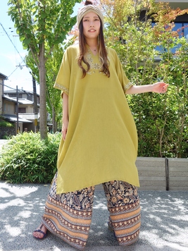 No: 40724262MUS オリエンタルステッチ刺繍カフタンチュニック