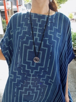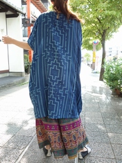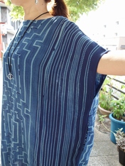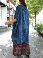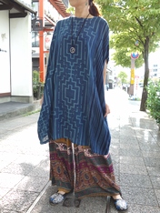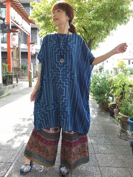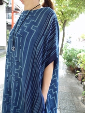 No: MTDS522H モン族柄藍染ダブルガーゼワンピース