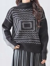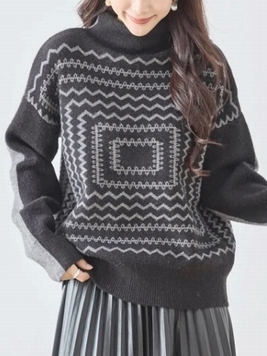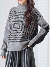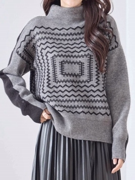No: R31530ABKGY ジオメトリックタートルニットプルオーバー