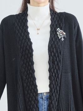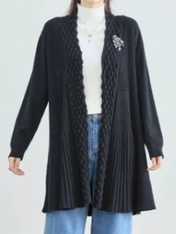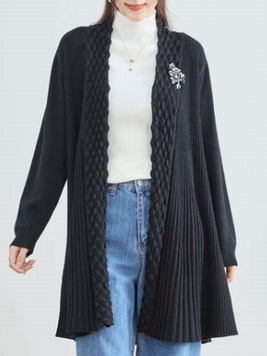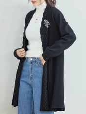 No: R32037CBK リブ切替トッパーロングカーディガン