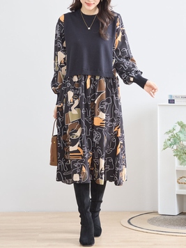 No: N83011BBK パブパブフェイスレイヤード風ワンピース