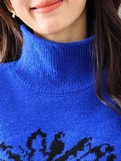 印象的なデザインのタートルニットです。