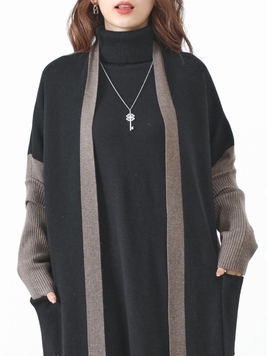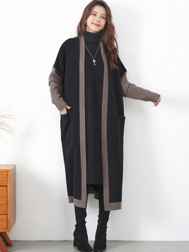 No: C32265BKBE 配色切替ロングニットカーディガン