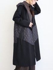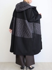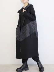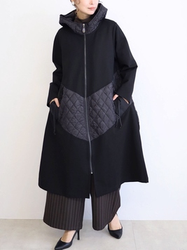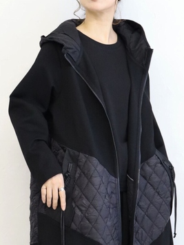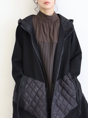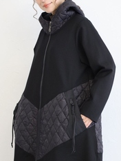 No: 3200949BK おとなモードのキルティング切替フーディコート