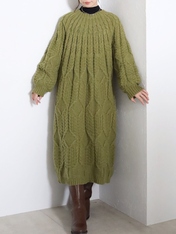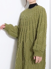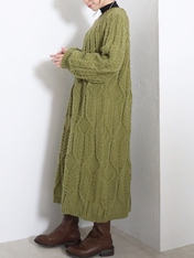 No: 77202885GR シュシュケーブルニットロングワンピース
