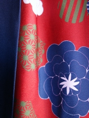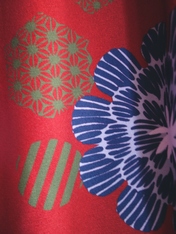 牡丹と麻の葉モチーフの華やかな柄と、