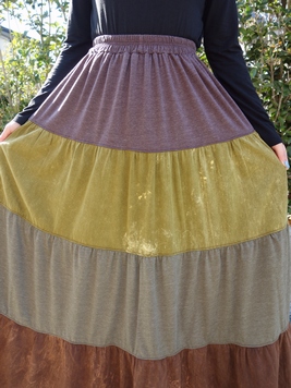 No: 7911BRKH ウォッシュ&プレーン切替えティアードスカート