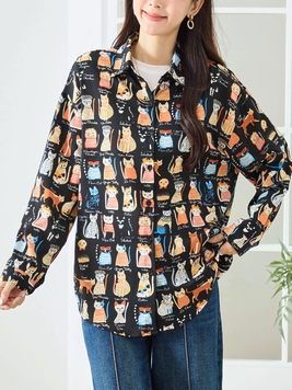 No: N72446BK アートプリントシャツ