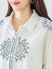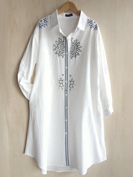 No: N72052AWH コットン刺繍前開きチュニックワンピース
