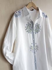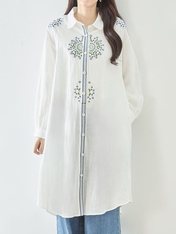 - コットン刺繍前開きチュニックワンピース