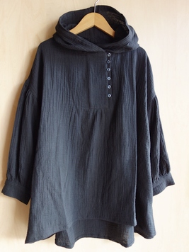 No: NTU1963BK コットンダブルガーゼフードチュニック