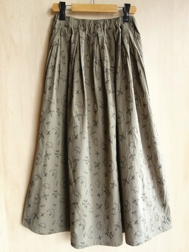 No: NNR1900KHABK 鳥と葉っぱの刺繍ステッチコットンスカート