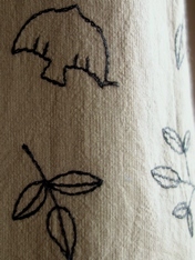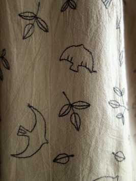 鳥と葉っぱの繊細なステッチ刺繍を施し、