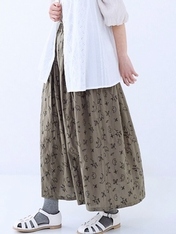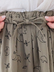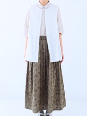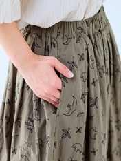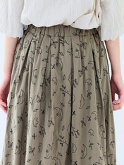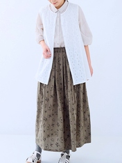- 鳥と葉っぱの刺繍ステッチコットンスカート