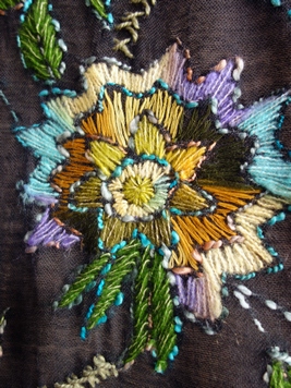 ぷっくりと立体感のある花の刺繍を