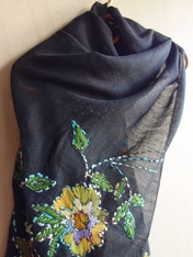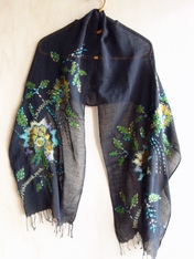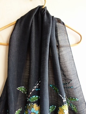 No: 4031249602BK 花の刺繍ストール