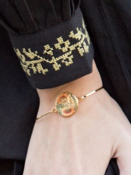 - チェコガラスのボタンがきらめくブレスレット。