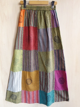 No: 21N020KHA ヴィンテージライクなパッチワークのスカート