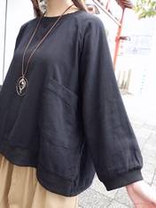 No: D8797BLK コットンツイルガーゼWフェイスリブTOP