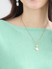 広めのネックラインでスッキリ見せ、