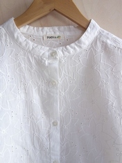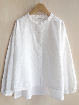 No: 40825220WH クレマチス刺繍コットンブラウス