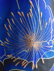 牡丹のめしべに金糸の刺繍を施し、