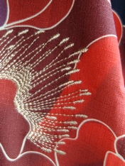 牡丹のめしべに金糸の刺繍を施し、
