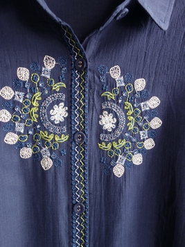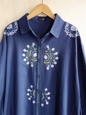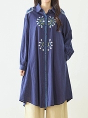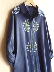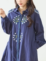 No: N72052BNV コットン刺繍前開きチュニックワンピース