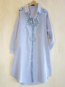 No: N72052BST コットン刺繍前開きチュニックワンピース