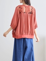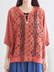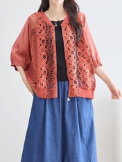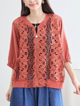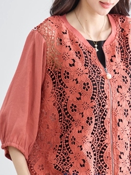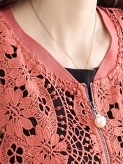 - 花のレースジップアップブルゾン