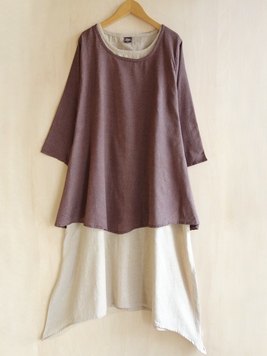 No: 5888BRBE 重ねたバイカラーレイヤードコットンワンピース