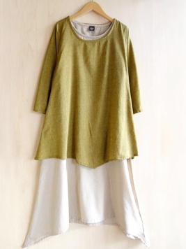 - 重ねたバイカラーレイヤードコットンワンピース