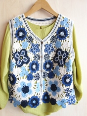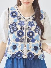 No: N32125BL 花のクロシェベスト