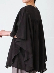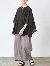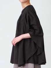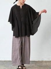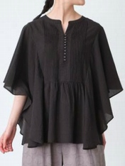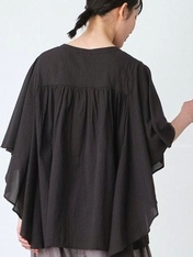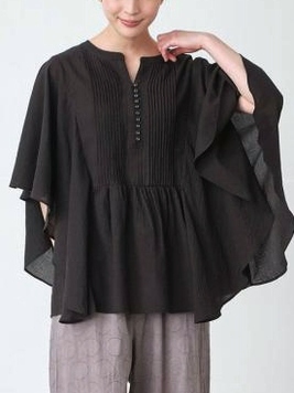 - 多ボタン×ピンタックバタフライ袖ブラウス