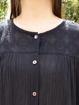 No: ST126065BK コットンクレープ花の刺繍ワンピース