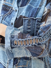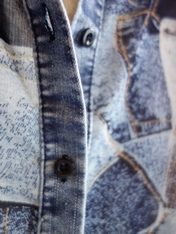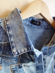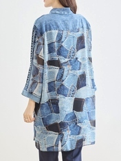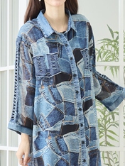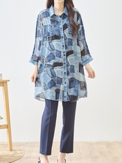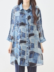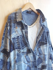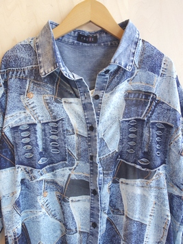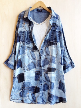 No: N72604DBL シアーのデニムパッチプリントロングシャツ