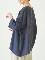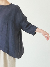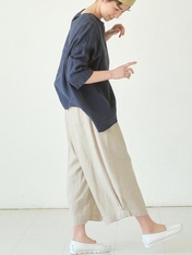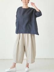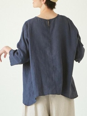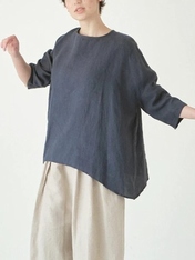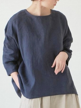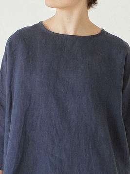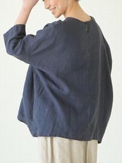 No: D8398NAV リネンオックスワイドプルオーバーブラウス