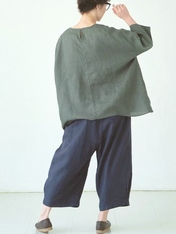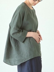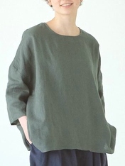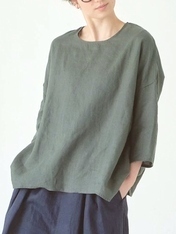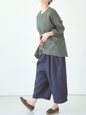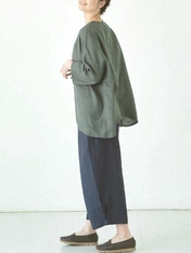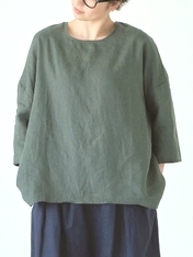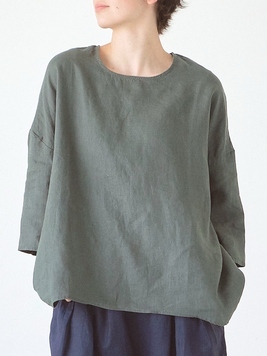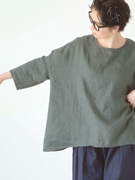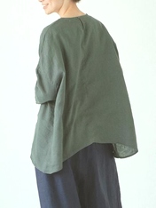 No: D8398GRN リネンオックスワイドプルオーバーブラウス