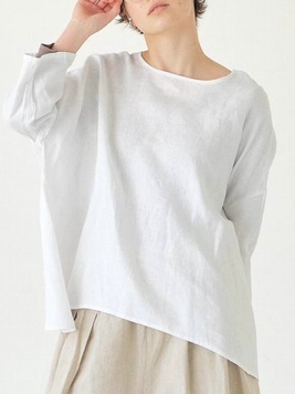 No: D8398WHT リネンオックスワイドプルオーバーブラウス