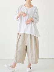 - リネンオックスワイドプルオーバーブラウス